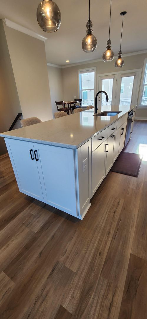 Don't miss this end unit on the VCR Trail! Find yourself at home in this beautifully designed and modern Caroline floor plan. This 22’ wide townhome comes with a rear 2-car garage and a shiny, flaked epoxy floor! The home includes over 2,090+ sq. ft. of living space. The entry opens to the beautiful luxury vinyl plank flooring of a spacious great room and full bath that can be used as a second living area, home office, home gym, etc. Walk up the oak stairs to the main level of the home and be greeted by the open concept design featuring a stunning chef’s kitchen with stainless steel appliances including a gas cooktop, quartz countertops, white cabinets, and 4 pendant lights over a generous 11.5’ long island in the center, overlooking the living room and breakfast area. The expansive owner’s suite features a walk-in closet, tray ceiling, and a luxurious roman shower with a dual sink vanity. Two additional bedrooms, full bath, and conveniently located laundry area complete the upper level of this home. Highlander Park is distinguished by its location as it is less than a mile from the VRE and Downtown Fredericksburg along with its extravagant interior and exterior features.
